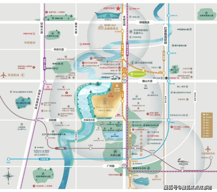 生态:家门口百亩市政公园与千亩天府森林公园,3公里内锦江生态带、天府森林公园、红石公园等城市公园林立,湖光自然相伴。